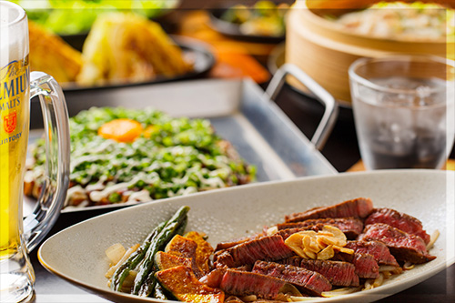 「焼き焼き鉄板 はまのや」の名物である 鉄板料理。中でも、黒毛和牛を 使用した「黒毛和牛ステーキ」は、 食べていただきたい逸品です。 お客様のリクエストに応じた焼き加減で丁寧に 焼き上げるお肉には旨みが凝縮されています。 「キャベツのアンチョビ焼き」や「鉄板ねぎ塩ホルモン」など、 お酒の相棒となる 人気定番メニューもご堪能ください。