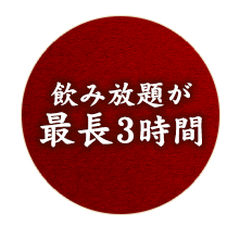 充実の3時間飲み放題も付いているので、じっくり飲みながら料理をご堪能いただけます。